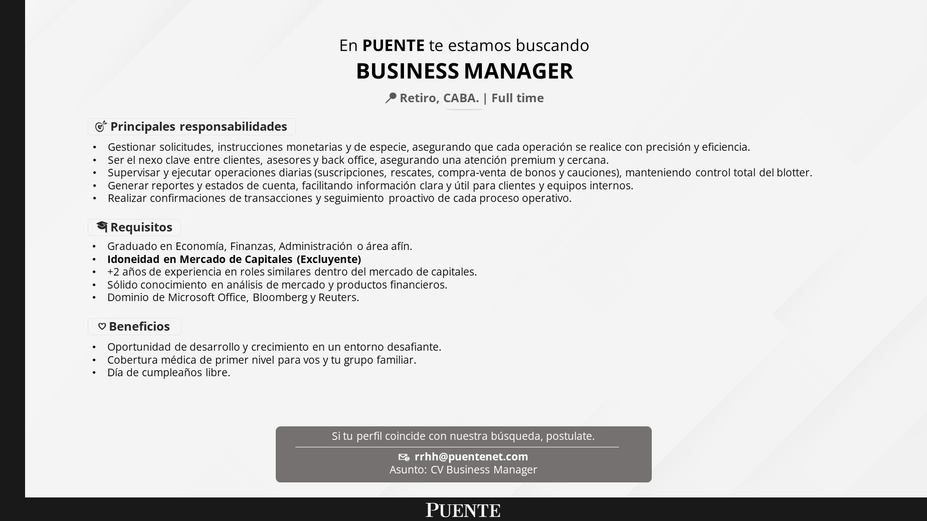 Formá parte de una compañía con más de 100 años en el mercado de capitales y desarrollá tu carrera junto a grandes profesionales.
