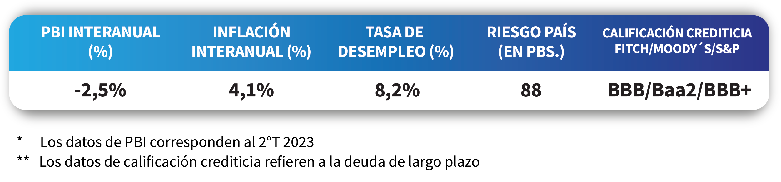 La Reserva Federal de Estados Unidos (Fed) mantuvo inalterada la tasa de referencia en el rango de 5,25%-5,5% actual, en línea con las expectativas. Sin embargo, se prevé que las tasas elevadas se mantengan por más tiempo, siendo la estimación para este año de 5,6%, lo que implicaría un alza adicional. En concreto, la probabilidad descontada del mercado de ese ajuste es del 31% en noviembre y 53% para diciembre. En consecuencia, los rendimientos de los bonos del Tesoro americano se ampliaron a lo largo de todos los vencimientos durante la semana, alcanzando el correspondiente a 1 año el 5,45%, a 3 años 4,80% y 10 años 4,44%. Por su parte, en Brasil, el Banco Central redujo la tasa de interés hasta 12,75%, en línea con lo esperado. Adicionalmente, la actividad económica de julio avanzó +0,4% mensual (superando lo estimado) y +0,7% interanual, acumulando una mejora de +3,2% en el año. En Uruguay, las tasas de corte de las Letras de Regulación Monetaria aumentaron frente a la última licitación, sobresaliendo la correspondiente a 360 días, que pasó de 9,22% a 9,55%, seguida por aquella a 30 días (desde 9,59% a 9,88% actual).